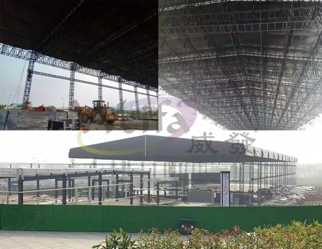 铝合金桁架E1200为我公司的主打产品之一,在近年演出活动舞台搭建规模不断扩大的趋势中深受客户欢迎,并于2019年在成都“侏罗纪世界电影特展”充气膜篷房中大放异彩。